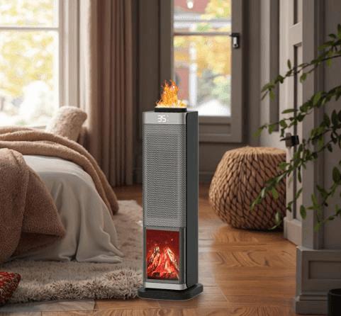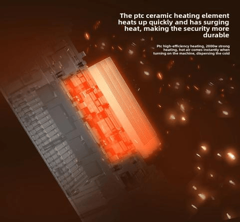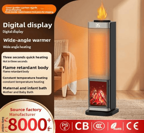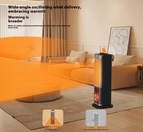 Functions: PTC ceramic heating/internal temperature control protection/Tilt switch/Shake function/flame-retardant housing /3 setting options /ECO energy-saving mode/remote control/D-class flame